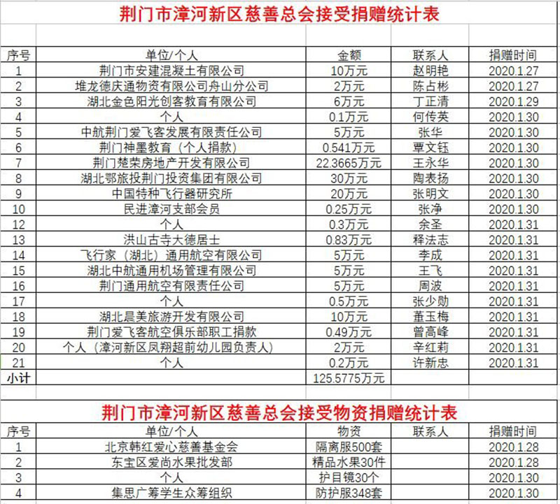 1月31日,為更好救治病患,荊門通航又響應“一方有難,八方支援”號召,為荊門市漳河新區(qū)慈善總會捐贈5萬元,用于購買各類物資。